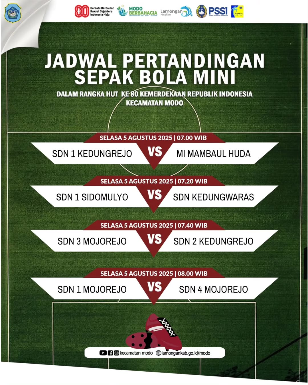 JADWAL PERTANDINGAN SEPAK BOLA MINI DALAM RANGKA HUT KE-80 KEMERDEKAAN REPUBLIK INDONESIA DI KECAMATAN MODO