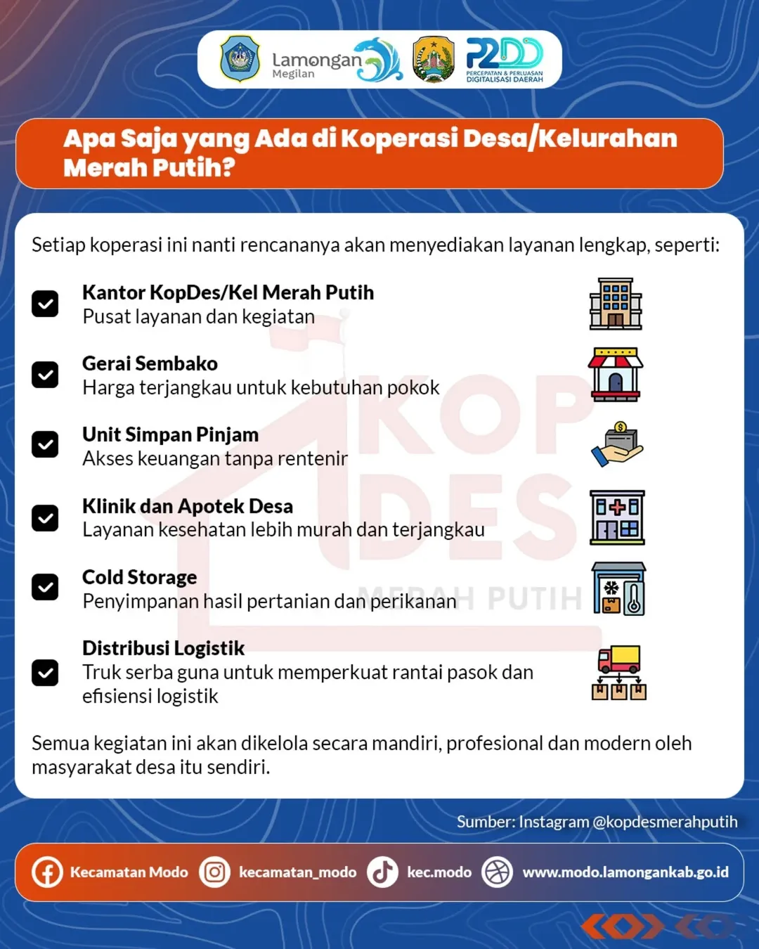 Dengan pengelolaan yang mandiri, profesional, dan modern, Koperasi Merah Putih menjadi langkah nyata menuju desa yang lebih kuat, sejahtera, dan berdaya saing.