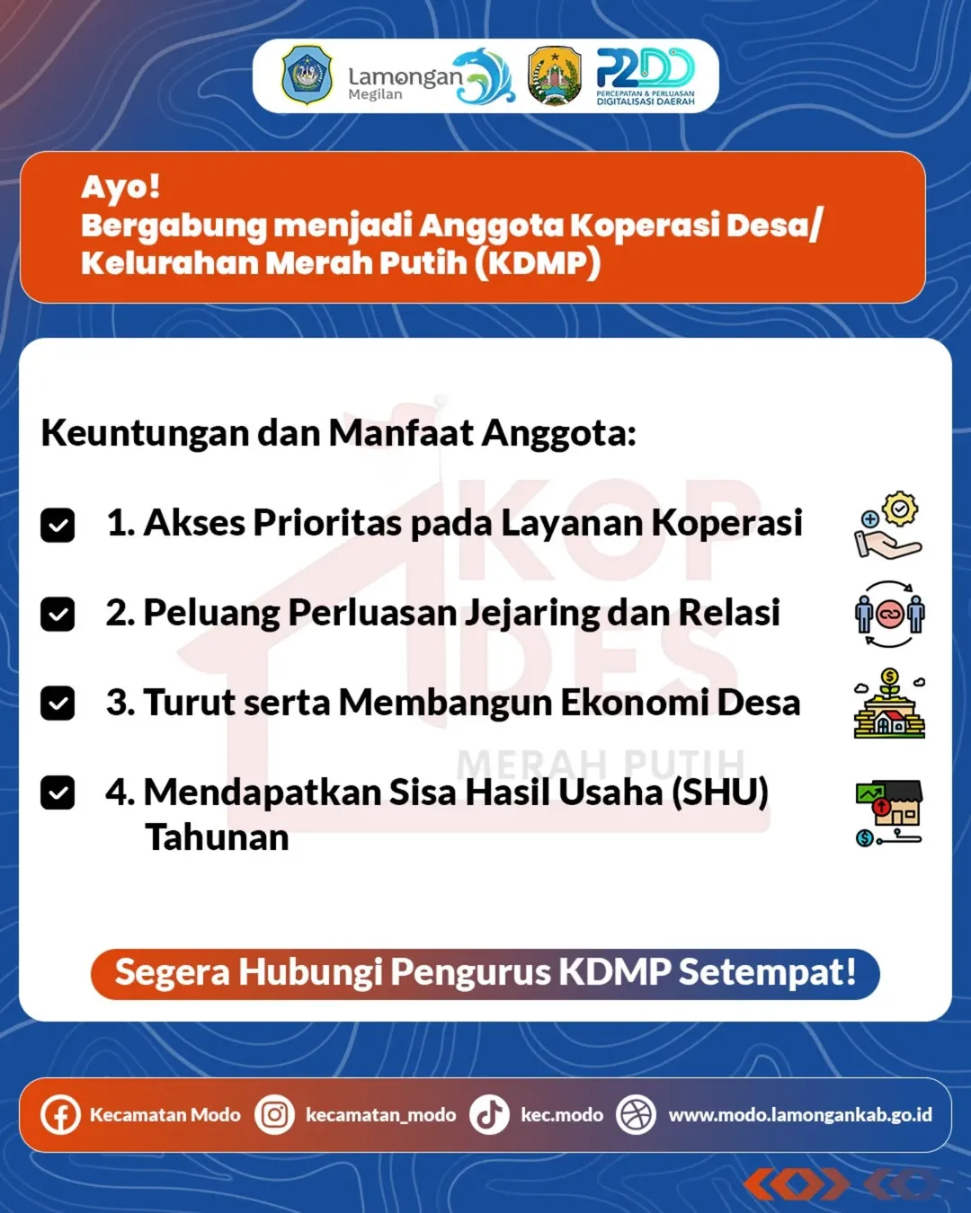 📞 Segera hubungi pengurus KDMP setempat dan jadilah bagian dari gerakan membangun desa dari kita, oleh kita, dan untuk kita!